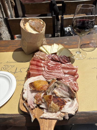 Read moreQuesta norcineria è assolutamente divina. Si mangia splendidamente. Noi abbiamo preso un tagliere di salumi misto per tre persone, un panino alla porchetta, uno alla mortadella oltre ad acqua ed uva bottiglia di ottimo vino Bianco. In bianco non ce l'abbiamo fatta a finire tutto. Era davvero ottimo ed abbondante. Abbiamo quindi acquistato anche dei salumi e dei formaggi da portarci a casa estremamente buoni. Alla fine il conto è una sorpresa assolutamente in positivo. Credo che la prossima volta che verrò a Sutri torneremo di certo. Grazie anche al personale che deve districarsi tra...