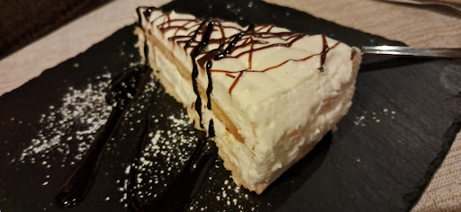 Passi la pasta al cinghiale..(magari 10 grammi in piu' non sfigurerebbero). E poi si passa alla TAGLIATA che io ho chiesto al SANGUE. La cottura era azzeccata. Ma le note positive finiscono qua'. Come si vede dalla foto, la carne (qualita'...insomma, si puo' trovare facilmente di meglio), presentava il sangue nel piatto. Ora che ad uno piaccia un tipo di cottura e' una cosa, ma il sangue nel piatto non si puo' vedere. Basterebbe far riposare la carne su un tagliere, dove rilascia i liquidi, e cosi' servi un piatto perfetto. E poi, se ti chiedo una TAGLIATA, tu devi tagliarmela in pezzetti e non presentarmi una fetta intera. Se ti spacci per essere un posto in cui la griglia la fa' da padrone, devi essere perfetto. E magari quello che la cuoce, tenere la mascherina...