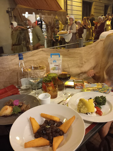 Read moreLocale caratteristico dai colori antichi. La saletta è caratteristica dei borghi medievali. Ho avuto solo un pò di sensazione di essere sotto il luvello del suolo. Forse la finestra della sala sarebbe stata piú confortante se scoperta. Ma veniamo al sodo, che è piú importante: i piatti. In paese c'era la sagra del cinghiale, pertanto, ed è quello che volevamo, abbiamo trovato il menū basato interamente su tale selvaggina. Un antipasto dagli abbinamenti perfetti e ricercati, affettato di cinghiale su cipollina agrodolce è stato una delizia; le tagliatelle al ragú di cinghiale sono state esaltate alla perfezione con un sugo non unto, asciutto e senza troppo pomodoro. Al dente come le adoro hanno lasciato vivere il sapore della carne ed il taglio lasciava intendere che fossero fatte a mano. Il secondo. Cinghiale. La carne soffice e ben esaltata senza olii superflui e sughi pesanti, ci ha fatto sentre ciò che eravamo andati a cercare: la cacciagione. Nel menu fisso (abbiamo tassativamente lasciato a loro tutte le decisioni) vi era un vino che pochi offrono nei menu turistici. Il contorno al cinghiale era affidato alla pilenta fritta. Anche qui: leggera friabile senza presenze di olii, quindi si sentiva il sapore della polenta vero e non del fritto unto. Il dolce. Ah che carezza la meringa cotta alla fiamma e la crema sotto; e la mia mousse al pistacchio con cappuccio sopra di cioccolato. Caffè ottimo senza retrogusti. Per la chiusura della stanza solo tolgo una stella ma la cucina è perfetta! I ragazzi che servono sono gentili e veloci, ogni richiesta viene subito soddisfatta. Occorre andarci,...