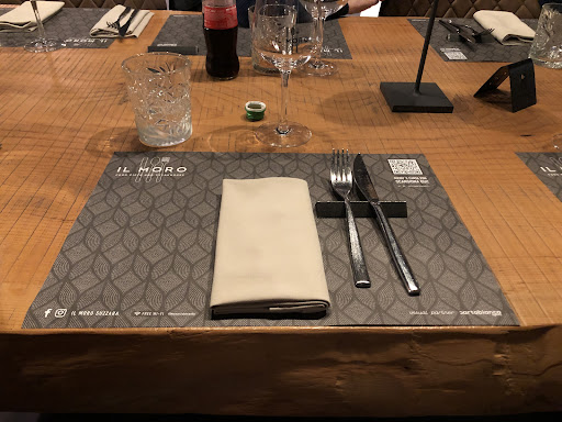 Read moreIn direzione Gonzaga o Suzzara/Mantova, a seconda di dove siete diretti, è situato questo ristorante/pizzeria che in origine era il motel "al sole", poi è diventato ristotante pizzeria "Besito", fino all'attuale "il Moro". Con l'ultimo cambiamento c'è stata anche una trasformazione scenografica, Il locale ha un concept moderno ma non troppo elegante. Gradevole... Ho scelto la pizza gourmet, come potete veder dalla foto sotto, nel complesso buona così come gl'ingredienti sono stati gradevoli. E poi il dolce, un tortino di mele con gelato alla vaniglia d'accompagnamento, quest'ultima si sentiva appena appena. Mentre il dolce se è stato fatto "in casa", è stato assai delizioso. Infine il conto considerando pizza gourmet + acqua + dolce e ovviamente il coperto, totale 21,50€. Segnalo che vicino all'uscita c'è un piccolo spazio per il dopo cena se qualcuno vuol fermarsi ulteriormente. E veniamo ai punti negativi, che non ho voluto conteggiare nel voto finale perchè sarebbe stato non veritiero ma comunque voglio segnalare per migliorare il servizio offerto... Nel mio posto c'era il coltello con punta piegata, per carità l'usata lo stesso, meglio evitare... Così come, in ben due occasioni è stata accesa la musica non di sottofondo ma ad alto volume e considerando che in sala c'erano dei bambini piccolissimi, non è stato un bel...