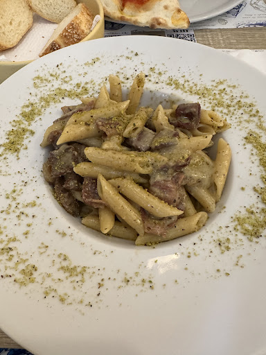 We were looking for a good lunch and found this little spot after walking around a bit. My husband cannot eat onions and is a little less adventurous in trying new things than I am, so it took us a little bit to find a spot to eat. We looked over the menu first and decided this was the spot. Our server was nice and spoke English, so she understood us very well. I love Sicily but we have had some issues at restaurants because we don’t speak Italian except for a few words so it’s been a little hard for us and probably frustrating for wait staff as well. But, this young lady was great! I ordered the pistachio pasta which I loved. The bechamel and pistachio sauce was truly one of the best sauces I’ve ever had on pasta. I’m going to be craving it when I get home :( My husband had the calzone which had prosciutto and cheese with a meat sauce in it. He said it was one of the best he has ever had. All in all this place is a must visit when in...