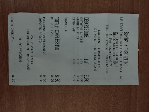 We came here for lunch several days while staying at Villa Politi. They offer a good range of salads, sandwiches, cakes and ice cream. Prices were pretty average compared to other places we ate and certainly much better value than the hotel. Most of the waiters had a little English, which was really helpful if we had a question but had run out of Italian vocabulary! We were happy with the experience and speed of service at lunchtimes. We did come once for dinner, but found the service a bit slow and the staff overwhelmed. At dinner, we had steak served with courgette (fine) and tuna with guacamole (tuna was nice, guac was just an underripe avocado put through a blender- didn’t eat it). They also serve pizza in the evening which looked and smelled nice. It’s a popular local place, open all day til late. You can pre-book or just turn up. Overall I’d recommend it if you’re staying nearby and don’t feel like going into...