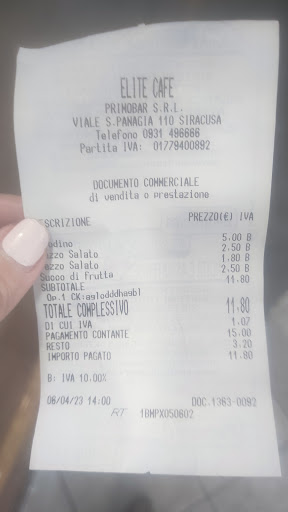 Read moreQuando decido di fare colazione al bar di solito vado negli stessi posti e il Bar Élite è tra questi. La qualità delle paste da colazione non si discute, la sfoglia del cornetto è ottima mentre il cappuccino e il caffè variano troppo, di solito accettabile, a volte discutibile e non so se dipenda da chi lo fa o dalla giornata... Purtroppo il numero di stelle che do scaturisce soprattutto dalla poca cortesia del personale che abbiamo riscontrato in diverse occasioni, tra cui quella di oggi nella quale hanno negato un bicchiere più piccolo di granita per mio figlio, per evitare sprechi, che avremmo comunque pagato a prezzo pieno perché a detta della cameriera "non si può fare, va presa la porzione normale e poi la può dividere", episodio che si commenta da solo. Fosse per gli altri compagni di colazione, non ci metteremmo più...