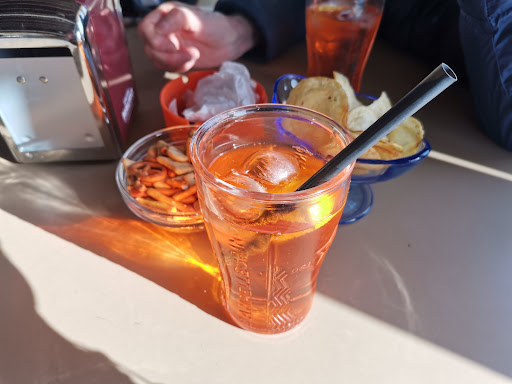 Do una stella perché non c’è la possibilità di darne 0, richiedo un aperitivo per 2, un gin tonic e uno spritz ovviamente chiedo che gin abbiano per gustarmi il gin tonic come piace, mi risponde il banconista dicendomi “ce l’ho normale” io basito dalla risposta riformulo la domanda e mi risponde “quello che usano tutti i bar” perciò chiedo la “marca” ed era un gin del discount un gin london da 2 litri da 4€ ma sorvolando questo arriviamo al tavolo e non ne troviamo uno pulito, ci sediamo lo stesso e aspettiamo dopo 10 minuti si presenta la cameriera con 4 rusticini piccoli che erano un orrore non hanno avuto la decenza di riscaldarli e con delle patatine ormai andate, dopo che finiamo andiamo in cassa e il conto veniva 14€ nonostante ciò pago e riferisco al titolare che risponde “le patatine andate ce l’avrai tu a casa tua” sono sconvolto da tutto ciò, mai più ve lo sconsiglio a pieno per l’aperitivo spero che per il resto sia migliore anche se ne...