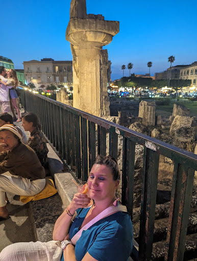 Read moreThe food was very good: I had an asparagus risotto with mussels, squid and bacon, with a glass of wine. My partner had baby squid with a pea cream and potatoes, also delicious. We were able to get served at eleven in the evening, and didn't have to wait long. It's also a cocktail bar, and appeals to the young and trendy Syracusians. The location next to the Temple of Apollo is delightful, with both outdoor and indoor seating. The prices are good considering the location and the quality of the food: our bill came to €33 for the two of us. Well...