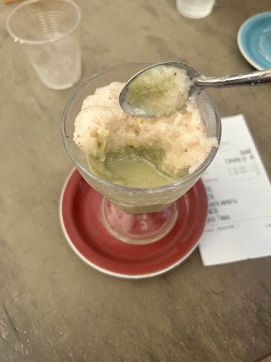 La granita non mi è sembrata tra le migliori provate in zona: la consistenza risultava più granulosa, con pezzi di ghiaccio evidenti, e non cremosa come ci si aspetterebbe. Inoltre, dopo una lunga attesa per due granite – nonostante al bancone ci fossero due persone più un cameriere e i tavoli disponibili fossero circa una decina – mi è stata servita una granita quasi del tutto sciolta, quindi liquida. Questo ha reso l’assaggio poco piacevole.