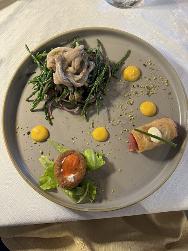 We ate here on the last of four nights in Ortigia, 6 weeks into our European trip and this was arguably the best meal we’ve had in that time across four countries. Our accommodation host recommended it and we are so glad we walked the short distance to get there. The waiter was delightful and we chose the chef's degustazione menu - it was delicious and from our perspective very well price (only 70 euros for the two of us). We thought we might nearly be over seafood but the small plates (three served on each occasion) were somehow both original and local - just perfect. From the anchovies (?) with tiny asparagus to the tuna tartare cannoli and the crispy but melt in your mouth prawn with tomato jam, it was all wonderful. We had just enough room to share a dessert - a twist on tiramisu with soft biscotti rather than sponge. Yum! The Vino a Gogo Syrah type red he chose for me was light but mellow, working well with the food. It was a quiet Thursday night in April but I really hope that this restaurant has the success...