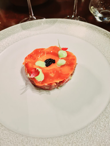 We ordered the meat and seafood tasting menu and a glass of sparkling wine each to start. It took about 45 minutes for our first dish to arrive. The food itself was very hit and miss, with dishes being bland, pasta being fairly undercooked (I like my pasta al dente), and unbalanced with overpowering elements. Unfortunately only one of the dishes were memorable. The food looks a lot better than it tastes.