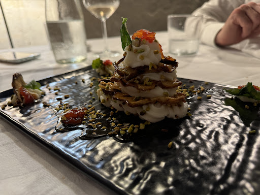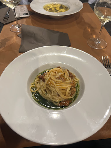 We received a greeting from the kitchen therefore we asked the waiter what it is and he said he doesn’t know, it was just given to him. We still don’t know what we ate because he didn’t ask his colleagues afterwards. Furthermore the waiter didn’t give us a wine cooler to keep the wine in the right temperature - all other tables had a wine cooler… After we finished our pasta, he asked us if we would like to have some desserts and I was like: sorry but we ordered a grilled octopus, maybe after that.