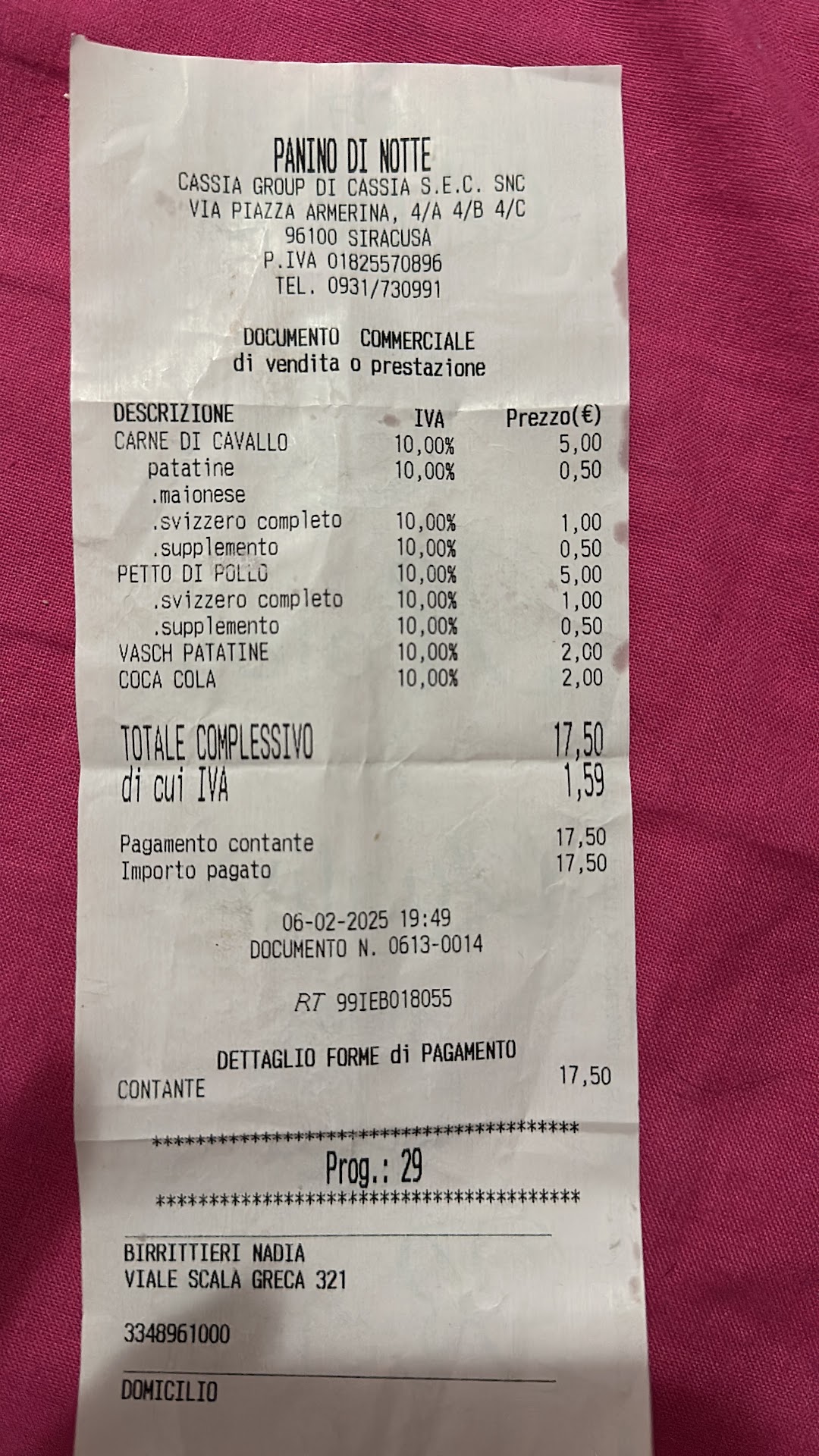 Read moreAbbiamo chiamato per dei panini col filetto di cavallo. Supponendo che non potesse cambiare più di tanto, in buona fede, non ci siamo curati di chiedere l'effettivo prezzo. Una volta sul posto, al momento del pagamento ci chiedono 36 euro per 3 semplici panini, in poche parole 12 euro a testa... Noi increduli chiediamo chiarimenti e con arroganza il cassiere ci informa che richiedendo specificamente il filetto é normale che il prezzo si alzi così tanto. Tralasciando che con molta probabilità non si trattava nemmeno del taglio di carne in questione, far pagare 12 euro un panino é scandaloso, per giunta senza scontrino. Andando da qualsiasi altro paninaro il prezzo sarebbe aumentato da 5 euro a un massimo di 7. Io e i miei amici non abbiamo insistito e abbiamo pagato la somma richiesta, ma comunque si tratta di una truffa bella e buona accompagnata da scortesia. In somma sconsigliatissimo, ambiente malsano e...
