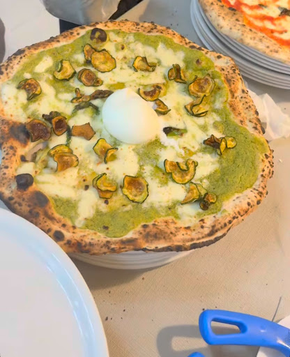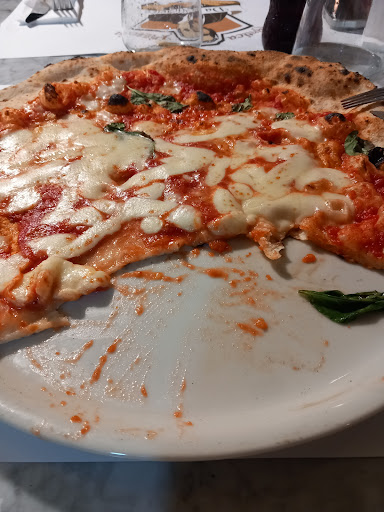 Read moreCibo 1☆ perché: la pizza si presenta molto molto grande, molto più grande del piatto, cosi grande che trabocca il condimento tra la tovaglietta di carta, il tavolo e le gambe, macchiando i vestiti.Proprio com'è avvenuto! La base ultrasottile e cruda, si scioglie tra il sugo e la mozzarella come fosse poltiglia ed il cornicione si presenta piatto e privo di bolle. La lievitazione è giornaliera, declinando le 48/72 ore. Le ore notturne ne hanno dato prove concrete a causa dei sintomi. SERVIZIO 1☆ perché dopo aver effettuato l'ordine la cameriera ha descritto come piccoline le fritture di pasta, creando illusioni e invitandoci ad ordinarne n.8 x 4 persone! Erano grandi come arancini siciliani! Pasta scotta e fritta! Pessimo sapore e qualità. Abbiamo sollecitato più volte le bevande, l'olio... e l'assenza dei tovaglioli fa da padrone!!! N.b: le tovagliette riportano una citazione dell'attrice Julia Roberts ché è grammaticalmente errata perché la prima "E" riportata nel testo come congiunzione è verbo e dunque "È " . Bastava solo copiare bene!!! AMBIENTE 1☆ perché il laboratorio, visibile a tutti è sporchissimo. Attrezzature sul pavimento e base del forno sporco tant'è che la base della pizza lascia nel piatto macchie nere di sporco molto evidenti. Norme igieniche mancanti e non attenzionate. Un controllo igienico sanitario sarebbe opportuno. Ambiente molto illuminato sembrava di cenare in uno stadio circondata da faretti con luce fredda. Ambiente non giovanile. Il conto non è in linea alla qualità, alla competenza e al servizio che è molto bassa. I prezzi esposti nel menù sono da pizzeria superior, da grandi aspettative... volate in cielo come un palloncino!! NON CONSIGLIO AFFATTO VOTO 1 STELLA PERCHÉ NON È POSSIBILE...