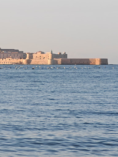 Now, the location: yes, the view of the castle across the water in Syracuse is quite nice. But the restaurant is located right next to the beach… and honestly, that beach was probably the dirtiest one I’ve seen in Sicily. Lots of trash, very small, not inviting at all. So it’s not really worth it for the setting either.