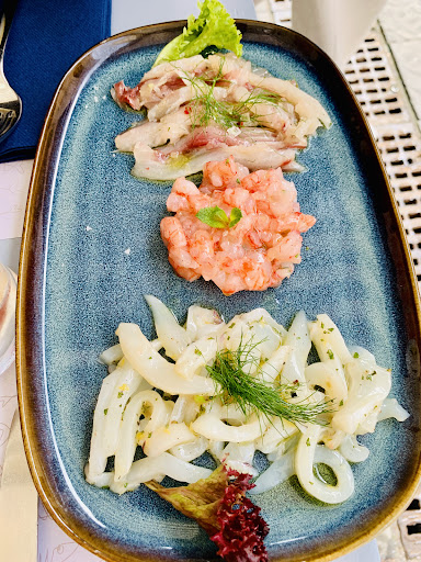 I dine here at least a few times, every time I come back to Ortigia, which is at least twice a year, and La Lisca is consistently terrific. Francesco, the manager, doubling up as entertainer, order taker, and overall fixer, is wonderful, and if Italian is a challenge for you, his English is great. La Lisca is perfectly located, if you come at lunch time you are sat in the middle of the market, bordering the spice and herbs seller. If you come in the evening, the whole street transforms into a sea of tables and another type of wonderful atmosphere. On this last occasion I had raw prawns starter with freshest sweetest peaches, mint etc and for main the tastiest, melt in your mouth grilled octopus you will ever taste. La Lisca is owned by a fishing family, and in fact used to be their market fish shop, until they moved to mainland Syracuse, but they continue to supply the freshest fish and seafood to their own restaurant and one can tell. All the waiters, except the redhead curly haired girl (normally there during the day and always scowling), can't do enough for you, are funny, and a picture of Sicilian hospitality. It is not cheap by Sicilian standards, but then this is a prime example of "one gets what one pays for". Do not miss it on your trip to Ortigia especially for dinner, very atmospheric...