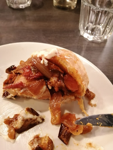 Perché 4 stelle per la peggior pizza della mia vita? Gusto personale, sfortuna e un pizzico di incauta curiosità. Ho ordinato una "melanzana fumè" (cercate nel menù): crumble all'assaggio? non pervenuto. Olive nere? Una solitaria. Triste alla vista e al palato: la burrata addolciva ancora di più i pomodorini confit (dolci ma senza consistenza) il resto era una crema marroncina insipida disposta a strisce orizzontali sulla pizza. Anche l’occhio vuole la sua parte: il mio si è sentito escluso.