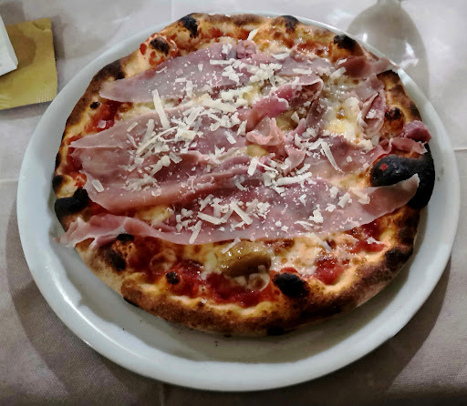 Read moreEtwas abgelegen von den Touristenhighlights liegt das bei den Einheimischen beliebte Restaurant. Es feierten zwei Gesellschaften und wir freuten uns, dass wir trotzdem bleiben durften. Im Hintergrund dudelte ein Fernseher. Die Spezialität des Hauses ist ähnlich einer Calzone mit Käse überbacken und war außerordentlich lecker. Die Pizza wurde auf Wunsch vegan zusammengestellt. Der supersympathische Sohn vom Chef hat uns perfekt beraten. Nur beim Wein war nicht klar was wir bekommen. Wir fragten nach dem Hauswein, den es nur in einzelnen Gläsern gäbe. Auf der Online Karte war er mit 3 € für 0,25 ausgewiesen. Wir bekamen zwei Gläser eiskalten mäßigen Rotwein und eher 0,125L. Berechnet wurden je 6€. Kein Versehen, obwohl uns der Ober den Wein auf der Karte auch nicht zeigen konnte. Schade, unnötige Abzocke. Ansonsten wäre das einer der besten...