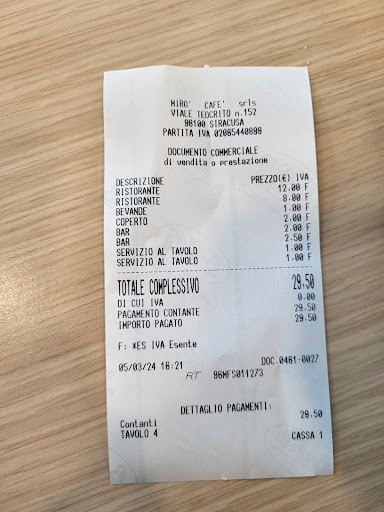 Devo fare personalmente i miei complimenti al Mirò Lounge Bar e Restaurant per la straordinaria e inimitabile presenza culinaria e gastronomica all'interno della nostra beneamata città di Siracusa... Attirato dalla location pulita ed invitante mi son fatto coinvolgere da amici a venire in questo locale dove con l'occasione abbiamo consumato uno splendido aperitivo all'insegna del gusto e di un ottimo cibo accompagnati da una eccellente maestria dello staff presente nel combinare i vari beveraggi offerti che con azzeccata e mai invadente presenza ci hanno sempre supportato durante quel pomeriggio... Mi sono sentito a casa per un attimo visto l'accoglienza del posto e dei loro proprietari che ci hanno saputo ripeto consigliare al meglio su tutto... Ho girato tanti posti sia a Siracusa e dintorni che anche fuori Sicilia e devo dire che il Miro' è uno dei pochi locali dove cortesia e buon gusto fanno da padroni ad una splendida location incastonata in pieno centro città con vicinissimo le attrazioni archeologiche che solo la città più bella che gli antichi Greci abbiano mai potuto costruire come Siracusa potesse avere..., mi sono sentito veramente coccolato e accolto con educazione e professionalità, virtù non tanto presenti in città oramai da tempi passati... Mi sono ripromesso con un mio carissimo amico di ritornarci più spesso e non solo fugacemente, magari a pranzo, per poter allietare le nostre giornate in compagnia del sagace staff del Mirò, che nuovamente ringrazio, per poter passare piacevoli e gustosi momenti come se non ci fossimo in realtà mai mossi da casa.. Bravi continuate così, unici ed inimitabili... Splendida realtà...