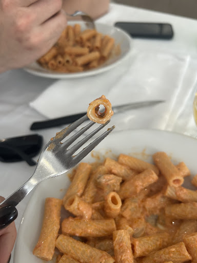 The eatery is a real treasure. a little bit away from the tourist district. We arrived a little early (by Italian standards) at 8 p.m. and were given a table right away. We requested recommendations when we arrived and then had the seafood spaghetti and pizza capricciosa. They were both mouthwateringly good.