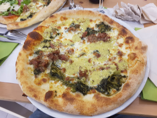 Sono andato con i miei amici a mangiare , il posto era abbastanza affollato e c’erano pochi camerieri . Abbiamo aspettato 20 minuti per ordinare e alla richista di una birra particolare esposta sugli scaffali il cameriere non è stato in grando di darci una risposta e ci siamo dovuti alzare per indicarla . Il posto era carino ordinato e in generale abbastana pulito . Le bevande ci sono arrivate un minuto dopo l’arrivo della pizza , avendo ordinato una birra pensavamo che ci avrebbero cambiato il bicchiere ma invece ci hanno lasciato quelli da vino e solo dopo una sollecitazione ce li hanno portati . Trovo poco professionale che si debba aspettare 20 minuti per le bevande e soprattutto non è di buon gusto portare prima la pizza che la bevanda , infatti in quell’attesa per dissetarci ci siamo recati ad un bar di fronte a compare una bottiglietta di acqua. Lo staff era poco poco professionale giravano nel ristorante in ciabatte ( una cosa poco igenica ) . La pizza era discreta , la mozzerella era scadente sembrava di mangiare gomma , la pasta era un pochino cruda e condimenti ( come la zucchina sulla pizza Totó ) erano di scarsa qualità . I servizzi igenici erano sporchi e dai bagni usvuva una puzza terribile non solo il lavandino era guasto e quindi non ci si poteva lavare le mani . Per terra c’era una patina di acqua sopra le piastrelle di colore marrone . Dopo aver mangiato la pizza e aver chiesto il conto abbiamo scoperto che il ristorante non faceva conti separati, e abbiamo dovuto organizzerci tra di noi per spartire equamente il conto . Vicino alla cassa c’era una computer con su della fastidiosa musica che rovinava l’atmosfera del posto . Dopo essereci recati in hotel poco ore dopo abbiamo avvertito il forte mal di pancia e un gomfiore intestinale , dopo di che durante la notte quasi tutti abbiamo vomitato rovindoci la serata . Sinceramente mi aspettavo di più da un posto così , e dovrebbero fare un controlla più accurato sugli ingredienti che servono . Per mia aperienza personale non consiglio a...