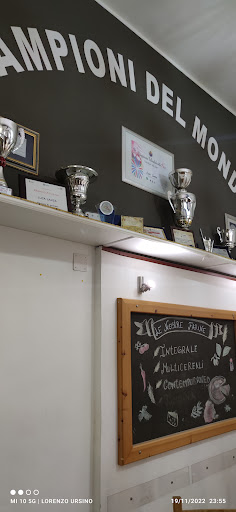 Read moreSabato sera in pizzeria... 8 persone di cui due bambini. Locale arredato con gusto, almeno a prima impressione, buona la accoglienza del personale. Io ho avuto il piacere di gustare il pizzolo Donatello con scamorza, crema di pistacchio, friarielli e salsiccia e mi è piaciuto molto: la pasta ė ottima e cotta perfettamente, gli ingredienti sono di buona qualità. Ho avuto modo di assaggiare la pizza con i bordi ripieni di salsiccia e la margherita. Ho visto menù delle pizze senza glutine con grande stupore , l'unica pizzeria da me visitata che ne abbia avuto uno. Mio figlio ne ha ordinata una e l'ha gradita abbastanza. Insomma molto contenti di quanto mangiato, tutto ad opera del pizzaiolo, campione del mondo di pizza acrobatica. Purtroppo due aspetti non li ho graditi, spero che sia motivo di miglioramento per il locale: visto il giorno della settimana ci saremmo aspettati già una lunga attesa, ma non cosi: per ordinare soltanto abbiamo atteso quasi due ore di orologio, vabbè che il locale era pieno ma i bambini avevano fame e, dalle 8.30 fino 21.50 non è stato possibile avere neppure un piatto di patatine. Abbiamo mangiato la pizza dopo le 22.30. Da rivedere dunque il lato ordinazioni ai tavoli. Il bagno c'è e per raggiungerlo si notano scalette, banchi frigo e roba un po'ammassata che dovrebbe essere occultata, ed è unico per tutti, per persone con disabilità ( dovrebbe essere dedicato secondo me), per uomini e donne, ed è scomodo in quanto di passaggio al personale del locale. Il locale ha bisogno di ripristini estetici, ci sono elementi danneggiati o mancanti, come sul tetto della sala più grande. Prezzi...