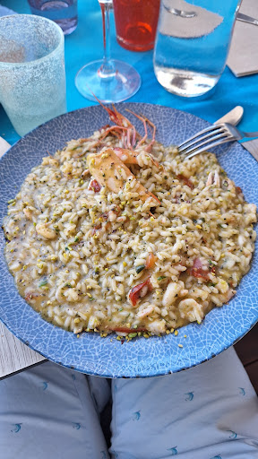 Apps-calamari and shrimp - not greasy and tasty for fried food. Seafood pastas were quite delicious and lots of variety of shell fish. Red shrimp tar tar was a first for me and freshly made. Grilled king prawns and langostines - perfectly seasoned and grilled. Pancetta with pistachio pesto- different for us and was made well. A little oily but it’s pancetta! lol.