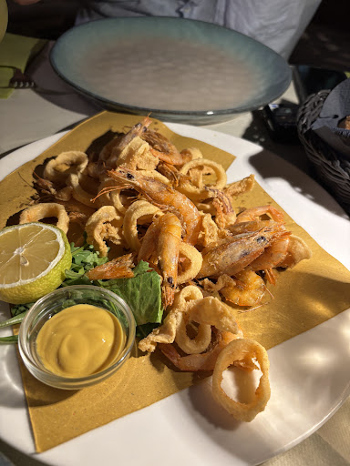 Read moreBest meal of our trip so far (5 days in). We were late arriving, but they held our table, which was nice. We were seated in the courtyard, surrounded by crumbling columns covered in ivy and huge potted plants under a clear, starry sky. Hard to beat, the setting. Food was good, although the shared antipasti that was meant to be seafood of five kinds turned out to be five other things (caponata, some cheeses, some breaded baked peppers, etc). For our mains, we had fish (sea bass, swordfish) and the roast beef, and they were all delicious. The tiramisu was decadent and boozy, the pineapple tart, very creamy and delicate. The espresso was strong and flavorful. Service was slow, but friendly and pleasant. Most importantly, they welcomed our dog, so they’re pet-friendly to boot. An altogether great...