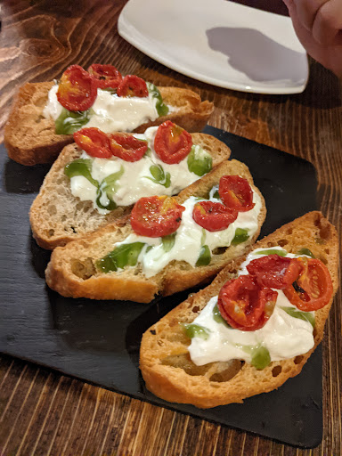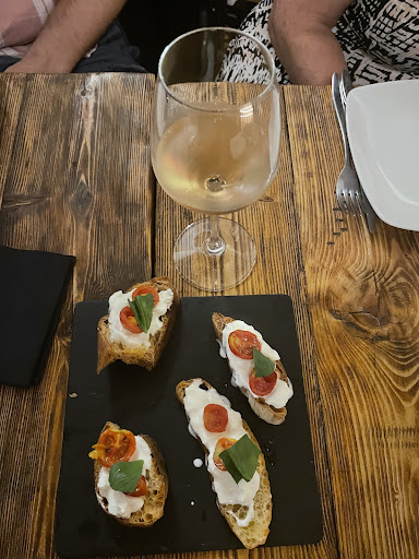 We ordered our food. A starter we shared and a main pasta course: The starter looked alike Bruschetta but the bread was soooo damn hard, that we couldn't bit of even chew them. If you don't need your teeth anymore, we recommend to bite into. We asked the waiter to exchange it.They came back with a softer bread. Still not good.