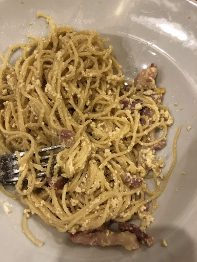 Lunch on Tuesday 10 April 2018 Wonderful and authentic little Sicilian restaurant with friendly banter between the front of house staff. One bottle of water, one bottle of white Principe di Corleone (€15.00), two mains of Sarde a Beccafico (sardines stuffed with raisins and pine nuts in breadcrumbs) with two side dishes of Patate Fritte (fried potatoes) and two coffees cost €57.00.
