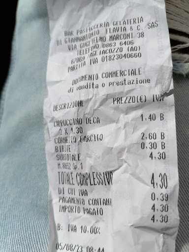 C:"Che cornetti sono rimasti?" B:"pochi,una conchiglia piccola al cioccolato e una sfoglia alle mele." C:"ok,li prendiamo entrambi,ci fa pure due caffè?" Paghiamo e da sole ci portiamo al tavolo fuori le colazioni. I caffè si freddano nel frattempo che mangiamo i cornetti ma poco male. Siccome è una pasticceria molto fornita ci viene voglia di assaggiare un' aragostina con la crema chantilly. Mi alzo la chiedo, me la danno e mi chiedono 80 centesimi di differenza subito. Evidentemente sarà successo in passato che la gente vada via senza pagare, altrimenti non si spiegherebbe questa fretta e questo customer service. Torneremo sperando in una fiducia pari alla...