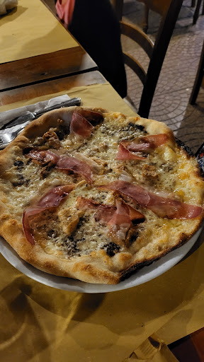 Gruppo di amici in vacanza, esperienza davvero terribile, una delle peggiore cene mai consumate. Personale estremamente scortese (il cameriere: "fammi spazio.", la gentilezza dov'è?), sbuffavano continuamente. Il servizio lascia molto a desiderare: alcuni bicchieri mancanti, e quelli presenti erano sporchi con una patina di unto estremamente visibile, stesso per i piatti. Tovagliette di carta incollate al tavolo molto appiccicoso. I prezzi senza senso, come fa una Margherita con la salsiccia a costare quanto una margherita con tartufo, crudo e porcini? (8,50€). Ho preso una Gustosa (4 formaggi, rucola e porcini) e mi hanno presentato una triste 4 formaggi insipida con 2 porcini di numero sott'olio del supermercato (inaspettato visto il vanto della pizzeria nell'uso di prodotti freschi) e niente rucola, giustificandosi al momento del servizio con :" ah mi ero dimenticato di dirti che non c'è più la rucola", risposta datami con tono scocciato. Ribadisco che sapeva veramente di poco, e per 8,50€ mi aspetto almeno un leggero sentore di formaggi vari. Il peggiore di tutti è risultato il proprietario, veramente scortese e maleducato, si è rifiutato di farci conti separati, impedendomi così di pagare la mia parte col bancomat. Ci ha dato due modalità di pagamento: conto unico in contanti o conto unico con bancomat, mettendoci quindi in difficoltà. Mentre cercavamo una soluzione il titolare ci ha apostrofato con frasi abbastanza infelici. Successivamente non siamo potuti passare al pagamento in contanti (che siamo riusciti a raccimolare fra di noi) giustificandosi con:" eh ma ho già battuto lo scontrino, se no prendo una multa" con un tono eccessivamente aggressivo e arrogante. Ps. Lo scontrino puoi annullarlo ed è nel mio diritto poter pagare con il bancomat. Un'esperienza da non ripetere, e ve lo dice un gruppo di persone che si...