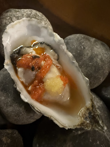 We began with a grilled Icelandic oyster, dressed in a stunning grapefruit dashi, Lao Gan Ma, and finger lime, an extraordinary balance of brightness, heat, and brine that set the tone for the meal.