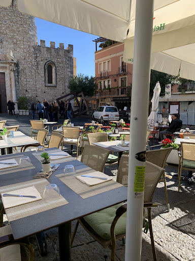 Read moreLa location è da urlo del resto siamo a piazza duomo a Taormina, il resto lascia davvero a desiderare non do una stella per la grande educazione della titolare che si è scusata, ma è difficile non lamentarsi come fatto ampiamente con la stessa. I motivi semplici: non si possono dichiarare prodotti e piatti decantandone la prelibatezza se in primis i prodotti scritti sul menù o descritti da chi ti serve sono differenti e infine non sempre ci si trova difronte turisti stranieri che non distinguono un calamaro da una triglia. Nello specifico in 2 abbiamo ordinato una grigliata mista di pesce fresco, dalla titolare viene definito un buon piatto abbondante x 2 persone composto da arrosto di pesce spada, calamaro, gamberoni, tonno e polpo. In realtà arriva un piatto freddo composto da 1 calamaro, 1 cicala, un gamberone argentino, 3 tentacoli di polpo, mezza fetta di pesce spada e 2 pezzetti di alalunga oltre 50gr di patate fritte di quelle surgelate, a seguito delle lamentele la titolare torna al tavolo dopo essersi consultata col cuoco perché non convinta di aver servito alalunga invece di tonno...ma come, per chi del mestiere può confondere i due pesci? E oltre i gamberoni argentini sono una vergogna meglio rispondere che non c'è né che utilizzarli spacciandoli per freschi. Per il resto abbiamo preso un antipasto di polpette mix di pesce almeno di buon gusto. Mi dispiace conosco il pesce conosco ciò che mangio e non amo essere preso in giro, preferisco al momento dell'ordinazione che mi si dica anche ho solo polpo fresco che bollito olio e limone almeno...