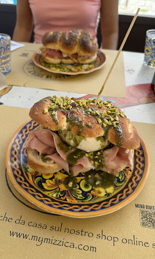 Trappola per turisti. Attirati da una sponsorizzazione forviante su Instagram, abbiamo deciso di provare questo locale. Ci sono così tanti lati negativi, di fatti ho trovato difficoltà a scegliere da quale iniziare. Parto dal servizio, la cameriera che ci ha servita è stata gentile, l'unico problema che parlava solo inglese, capisco che l'inglese sia la lingua universale, ma trovo ridicolo che a Taormina io non possa ordinare in italiano. Il loro "piatto" forte quello che sponsorizzano su tiktok, Instagram ecc.. corrisponde ad un tagliere che loro chiamano "aperiscacciata", sul menu è riportato il prezzo di 20 euro per min 2 persone, il problema che non è stato riportato che fosse 20 euro a persona. Si spacciano per un locale che fa prodotti tipici siciliani, mi hanno portato arancini surgelati e fritti. Inoltre comprano le recensioni qui su Google, chiedendo ai clienti di lasciare una recensione positiva in cambio di un cannolo in regalo. State quanto più lontani possibile da questo locale, Che di siciliano ha solo la localizzazione su Maps.