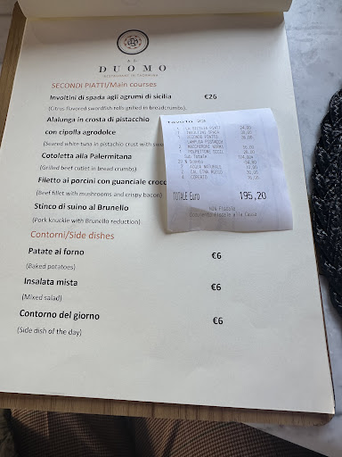 All afternoon we researched for the perfect dinner spot in Taormina. Unfortunately we ended up at Al Duomo. The server did not communicate with my wife at all, she didn't even get to order her own drinks - just got served whatever I was having . This is 2018.