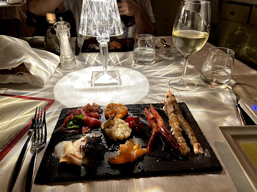 Read moreThis was an impromptu, walk-in that turned out to be one of our favorite dinners in Sicilia. We sat in the beautifully lit garden and our server, Luca, treated us like royalty from start to finish. I should mention that we do not look like royalty, lol! Luca spoke English very well but was pleased that I wanted to practice my Italian. We asked for his recommendations for the wine ( a wonderful rosatta), the appetizer ( we split the night’s special zuppa with seafood) and the main course ( we shared a whole sea bass, prepared Sicilian style.). All were amazing and perfectly prepared. The Fish was baked and presented to us whole on a platter, then fileted and plated with the Sicilian tomatoes, capers and olives and roasted potatoes. We finished with tirimasu - not our first in Sicily - but possibly the best. We were then given complimentary limoncelli and after that, another liqueur that was made from sun dried, fallen grapes. Luckily we were staying nearby! I told him “Dormo qui!” He said that would be fine, they were closed the next day! An evening and a “cena”...