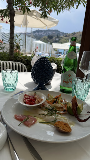 Read moreZunächst sind wir sehr herzlich von Camara, einem der Kellner, in Empfang genommen worden. Die Terasse ist wunderschön, mit einer tollen Aussicht und mit viel Liebe zum Detail dekoriert. Unser Essen war durchweg hervorragend ( wir hatten zunächst "Tartare del Tonno" und "Calamaretti fritti" und als Hauptgang "Linguine alle vongole" und das "Tonnno scottato", als Nachtisch hatten wir die "Torta napoletana" und "Sorbetto al limone con fragole"). Insbesondere der Thunfisch war von einer tollen Qualität. Dazu kam ein wirklich ausgezeichneter Service. Kellnerin Fabiana hat super beraten und empfohlen und war sehr bemüht, dem Gast einen wirklich tollen Abend zu bereiten. Sie war sehr herzlich, aufmerksam und zuvorkommend. Vorweg wurde zunächst Brot mit Olivenöl gereicht, zum ersten Gang nochmal, dieses Mal geröstetes Brot mit Salz und Pfeffer. Dazu kam eine umfassende Weinkarte, wir hatten den "Sul vulcano etna bianco" von Donnafugata und super leckere Aperitivi (Aperol-Spritz und Limoncello-Spritz). Die Wartezeiten waren sehr kurz, was möglicherweise auch an der geringen Auslastung lag. Das wiederum führten wir auf die erst kürzlich erfolgte Neueröffnung zurück, da das Essen absolut empfehlenswert war. Die Preise sind im mittleren bis höheren Segment, allerdings für die Region...