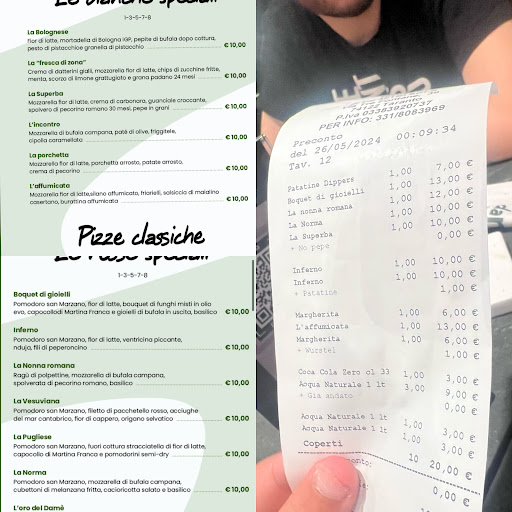Io e i miei amici abbiamo pensato di provare questa nuova pizzeria, viste le recensioni positive e le foto, e abbiamo prenotato in seconda fascia oraria (22.30) di sabato sera. Arrivati al locale, scannerizziamo i codici QR posti sul tavolo e ognuno di noi sceglie secondo i propri gusti. Appena siamo pronti, chiamiamo il servizio dall’apposito pulsantino. Niente. Dopo qualche minuto, premiamo nuovamente il pulsantino. Niente. Al terzo tentativo, riusciamo a chiamare a voce un cameriere che ci risponde che sarebbe arrivato subito (perché mettere un dispositivo di chiamata se poi bisogna comunque fare le scimmie urlatrici per attirare l’attenzione del personale?). Arriva una cameriera, molto carina, che prende le ordinazioni. Le pizze arrivano, devo dire anche piuttosto sincronizzate, e mentre le consumiamo qualcuno di noi si accorge di qualche difetto: friarielli praticamente crudi, mozzarella acquosa che rende la pizza completamente bagnata, buchi al centro della pizza… ma certamente è tutto perdonabile ad una pizzeria che ha aperto da solo quattro mesi. Purtroppo mi duole precisare quanto sia stato difficile comunicare fra noi, in quanto l’ambiente è davvero molto chiassoso, confusionario, poco arieggiato e pieno zeppo di tavoli. Attendiamo qualche minuto prima di chiedere il conto, che arriva e noi ci accingiamo a dividere le cifre per pagare… finché, uno di noi, non si accorge che i prezzi erano più alti rispetto a quelli riportati sul menù. In allegato riportata la differenza di prezzi tra menù e scontrino della pizza “Bouquet di Gioielli”, da 10€ a 13€… e così per altre pizze. Al che decidiamo di chiamare la cameriera che ci aveva serviti, segnalando la problematica. Al che la suddetta inizia a spiegarci che il menù è ststo cambiato, ma noi le mostriamo il menù appena scannerizzato con i prezzi inferiori, finché lei non si rivolge ad una nostra amica con “senti cara”, cominciando uno sproloquio insensato su come i tavoli fossero registrsti da 1 a 11 e a noi fosse capitato il menù del 12… nessuno di noi ha capito cosa intendesse, tuttavia, invece di chiedere scusa e magari chiamare il titolare per chiarire la situazione, ha asserito con “io ve le posso pure togliere LE DUE EURO, però…” alludendo che fossimo una massa di pezzenti (ebbene sì, siamo tutti studenti universitari e disoccupati, e LE DUE EURO a testa possono essere spese in altra maniera). Comunque alla fine ci sono stati sottratti dal conto gli euro in più rispetto al menù, ma, ciliegina sulla torta: eravamo in 9, coperti registrati 10.