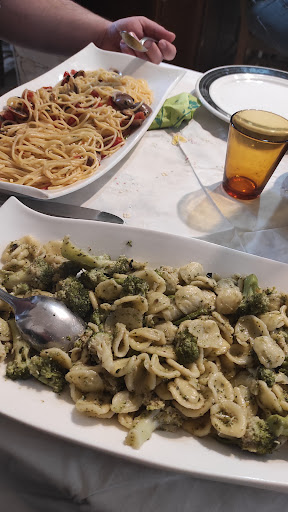 Ci siamo accomodati ed abbiamo subito ordinato. Volevo un orecchietta alle rape, ma mi è stato detto che non ci fossero perché non di stagione (ovviamente erano a menù). Mi è stato gentilmente proposto di sostituire le rape con i broccoli. Il nostro ordine è stato 1 orecchietta con broccoli e uno spaghetto a vongole, a seguire un insalata di polpo e una verdura grigliata (che purtroppo non era stata grigliata ma cotta al forno).