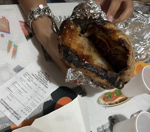 Io e i miei amici abbiamo pensato di provare questa nuova pizzeria, viste le recensioni positive e le foto, e abbiamo prenotato in seconda fascia oraria (22.30) di sabato sera. Arrivati al locale, scannerizziamo i codici QR posti sul tavolo e ognuno di noi sceglie secondo i propri gusti. Appena siamo pronti, chiamiamo il servizio dall’apposito pulsantino. Niente. Dopo qualche minuto, premiamo nuovamente il pulsantino. Niente. Al terzo tentativo, riusciamo a chiamare a voce un cameriere che ci risponde che sarebbe arrivato subito (perché mettere un dispositivo di chiamata se poi bisogna comunque fare le scimmie urlatrici per attirare l’attenzione del personale?). Arriva una cameriera, molto carina, che prende le ordinazioni. Le pizze arrivano, devo dire anche piuttosto sincronizzate, e mentre le consumiamo qualcuno di noi si accorge di qualche difetto: friarielli praticamente crudi, mozzarella acquosa che rende la pizza completamente bagnata, buchi al centro della pizza… ma certamente è tutto perdonabile ad una pizzeria che ha aperto da solo quattro mesi. Purtroppo mi duole precisare quanto sia stato difficile comunicare fra noi, in quanto l’ambiente è davvero molto chiassoso, confusionario, poco arieggiato e pieno zeppo di tavoli. Attendiamo qualche minuto prima di chiedere il conto, che arriva e noi ci accingiamo a dividere le cifre per pagare… finché, uno di noi, non si accorge che i prezzi erano più alti rispetto a quelli riportati sul menù. In allegato riportata la differenza di prezzi tra menù e scontrino della pizza “Bouquet di Gioielli”, da 10€ a 13€… e così per altre pizze. Al che decidiamo di chiamare la cameriera che ci aveva serviti, segnalando la problematica. Al che la suddetta inizia a spiegarci che il menù è ststo cambiato, ma noi le mostriamo il menù appena scannerizzato con i prezzi inferiori, finché lei non si rivolge ad una nostra amica con “senti cara”, cominciando uno sproloquio insensato su come i tavoli fossero registrsti da 1 a 11 e a noi fosse capitato il menù del 12… nessuno di noi ha capito cosa intendesse, tuttavia, invece di chiedere scusa e magari chiamare il titolare per chiarire la situazione, ha asserito con “io ve le posso pure togliere LE DUE EURO, però…” alludendo che fossimo una massa di pezzenti (ebbene sì, siamo tutti studenti universitari e disoccupati, e LE DUE EURO a testa possono essere spese in altra maniera). Comunque alla fine ci sono stati sottratti dal conto gli euro in più rispetto al menù, ma, ciliegina sulla torta: eravamo in 9, coperti registrati 10.