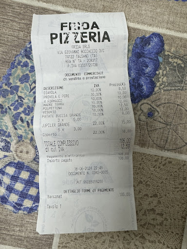 Read moreSe dovessi descrivere l'esperienza di ieri, non riuscirei a trovare i termini adatti. Siamo arrivati (tutti) alle 20.30-45 e ci siamo accomodati all'esterno del locale, con la sfortuna di essere "benedetti" dalla pioggia. Poiché ha smesso di piovere, ma ha ricominciato subito dopo, abbiamo optato per sistemarci all'interno (non arredato per motivi legati al periodo estivo deduco) Nonostante questo, siamo rimasti in piedi per tanto tempo, dopo aver richiesto più volte un aiuto per spostare i tavoli all'interno, al punto che è stata la NOSTRA comitiva a spostare dentro tavoli e sedie, sparecchiando anche tutto ciò che era stato bagnato dalla pioggia. Siamo stati ignorati e sicuramente abbiamo creato disagio, dato che eravamo 14 e stavamo tutti in piedi davanti alla porta che portava all'esterno, non sapendo appunto dove sistemarci. Dopo esserci finalmente seduti alle 22, credo, abbiamo atteso le bevande e devo dire che non mi sarei mai aspettata di sentire (perché ero di spalle e non vedevo) litigare il pizzaiolo ed un signore, che penso fosse il proprietario, tra parole pesanti e oggetti sbattuti. Inoltre, assieme allo spettacolo, abbiamo notato che le pizze uscivano 2 alla volta e infatti c'è stato chi si è ritrovato a finire di mangiare, mentre gli altri avevano appena iniziato o nemmeno mangiato, visto che alle 23 la mia pizza non era ancora arrivata e, se non avessimo chiesto 3 volte, probabilmente la birra sarebbe stata la mia cena. Devo essere sincera, mi sono sentita molto a disagio, perché oltre ad aver mangiato la mia pizza molto in ritardo, ho dovuto mangiarla di fretta, perché il nostro tavolo doveva essere lasciato per la comitiva dopo la nostra e per questo, ho davvero un vago ricordo di che sapore avesse la mia cena. È un peccato, perché il locale è coloratissimo, ben decorato e a tema con il suo nome, tuttavia, visto tutto il caos che si è creato (ed eravamo in totale 40/50 clienti quindi non me lo spiego), non credo che correrò il rischio di avere un'altra esperienza...