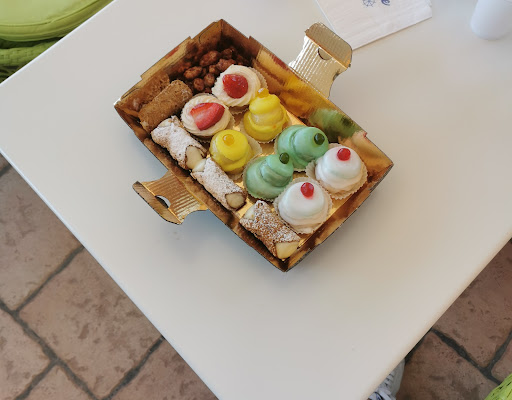 Read moreLocale molto pulito, curato e con un giardino dietro il locale ed una zona colazione esterna alla pasticceria. La scelta è ampia, soprattutto per le colazioni. Dai cornetti farciti dalla crema pasticcera al pistacchio ,nocciola e via seguendo. Ci sono altri tipi di brioches dall'aspetto delizioso, praticamente si mangia prima con gli occhi e tutti la bellezza di queste meraviglie si trasformano in vere bontà per chi come me ama la colazione. Cappuccino, caffè di vari tipi come il ginseng accompagnano il tutto. Varie volte però ho assaggiato le paste che tipicamente troviamo la domenica a fine pranzo e pur non essendo un'amante delle paste sia fresche che secche, quelle che ho assaggiato erano buonissime. Mi piace che sia aperto anche la notte perché una colazione con prodotti appena sfornati, prima di tornare a casa è il top. Prezzi, beh hanno alzato tutti un pò i prezzi per ovvii motivi e dipende sempre da ciò che si prende. Un cocktail più elaborato costerà comunque più di un semplice amaro. Io lo Consiglio, unica cosa che per me che non sono fumatrice e non ha interesse per quel che riguarda gratta e vinci e simili, metterei una porta vetrata per suddividere le due zone. Questo è un gusto personale che non toglie nulla all'attività ed al servizio. La locazione è perfetta, la pecca è il parcheggio. Tutto sommato però ne vale la pena, mi sento assolutamente di...