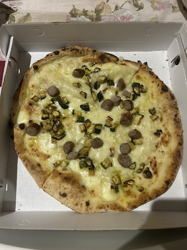 Pizza dal valore di nove euro e come potete ben vedere dalla foto, c’è massimo una salsiccia tagliata e le zucchine mi sembrano mediocri. Ma oltre questo Vorrei specificare che il servizio per ordinare è stato molto frettoloso, potrei dire anche maleducato da parte di una ragazza. E questo sicuramente, uno dei fattori che mi porteranno a non acquistare più. La telefonata è stata a dir poco insignificante perché metteva fretta dicendo che c’erano altre persone che chiamavano Ma credo sia giusto dare spazio a chiunque chiama per...