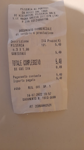 Dopo anni volevo nuovamente assaggiare i famosi panzerotti e arancini di Ricci, che quando vivevo a Taranto prendevo sempre. Avrei voluto... se non fosse stato per la scarsissima attenzione riservatami dalla signora al bancone. Praticamente, arrivato con mia moglie, c'è gente che aspetta l'asporto e una signora (aiutata da un'altra) prepara una serie di pucce e si alterna tra preparazione e cassa. Vediamo che i panzerotti e gli arancini sono GIÀ PRONTI nella vetrina del bancone; quindi, dopo aver aspettato con tanta pazienza per molti minuti, dato che la signora a un certo punto sembra aver terminato con le pucce, le chiedo i gusti dei panzerotti nel bancone e, dopo che me li elenca, le sto per dire quali voglio. Insomma, ci volevano un paio di minuti a darmeli e pagarli. Tuttavia, improvvisamente, la signora riprende a preparare pucce, non prestando minimamente attenzione alla nostra richiesta... Così, dopo aver atteso ancora un po' di minuti, abbiamo salutato (perché, al contrario suo, siamo gente educata) e ce ne siamo andati. Conclusione: MAI PIÙ (purtoppo). Inaccettabile una gestione del genere e un trattamento tale della clientela (se non conoscenti?) nel terzo millennio, e per di più in una città votata ormai...