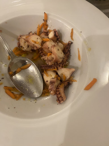 Un'esperienza eccellente, un tipo di serata che raramente si può avere da queste parti, grazie alla perfezione del servizio, la qualità del menu, e la professionalità dei proprietari e gestori: due ragazzi giovani e pieni di talento, energia e dedizione. Già nella telefonata nel primo pomeriggio per prenotare un tavolo, l'interazione è stata gentile, cordiale ed efficiente. Arrivate al ristorante siamo state accolte immediatamente e fatte accomodare in una sala dall'atmosfera elegante ma non pretenziosa, colori soft e musica al giusto volume. E' tipico di molti ristoranti non offrire un menu stampato, con l'intento di dirigere la scelta dei commensali su quello che il cameriere raccomanda, una pratica che mi ha sempre dato sui nervi e ho sempre trovato non trasparente e maleducata. Qui siamo subito state fornite di menu e carta dei vini, rifocillate con acqua frizzante, pane, tarallini e focaccia, ed educatamente lasciate ad esaminare l'offerta. Dopo qualche minuto il cameriere si è avvicinato chiedendoci se fossimo pronte a ordinare e cosi abbiamo fatto: bottiglia di Gewurztraminer, entusiasticamente raccomandatoci, antipasto misto, e poi frittura per me e polipo con crema di patate per la mia amica. Con la premessa che sono sempre stata un po' dubbiosa sulla cucina di pesce, e che prima di ieri sera non avevo mai mangiato una cozza, né mai assaggiato un' insalata di polipo che non fosse gommosa e dura, ieri sera ho provato le loro cozze fritte al miele e il loro polipo alla Luciana e ho dovuto riconsiderare la mia diffidenza: assolutamente deliziosi, entrambi i piatti. Abbiamo chiesto al cameriere di fare i complimenti allo chef. La mia frittura era altrettanto incredibile: freschissima, cotta alla perfezione e abbondante (tant'è che ne ho portata un bel po' a casa), il polipo in crema di patate è stato divorato in un silenzio di apprezzamento e delizia. Il vino era perfetto e alla temperatura giusta e tutto il personale era attento all'andamento della nostra cena con discrezione ed efficienza. Dopo aver completato il pasto con un dessert al limone che era "la morte sua", abbiamo avuto modo di complimentarci di nuovo di persona con lo chef, che ha fatto il giro tra i tavoli per ringraziare i commensali. Un tocco di assoluta classe che non vedi mai. Da un ragazzo appena ventenne. Sul finire abbiamo avuto una piacevolissima chiacchierata con il gestore di sala, fratello maggiore dello chef (scusa, non ricordo il tuo nome!) e ho deciso che tornerò in questa assoluta perla della ristorazione e ospitalità locale ogni volta che potrò. Non ho che parole di elogio e congratulazioni per questo gruppo di giovani imprenditori. Avanti così ragazzi, e ricordatevi che l'invito a Londra resta...