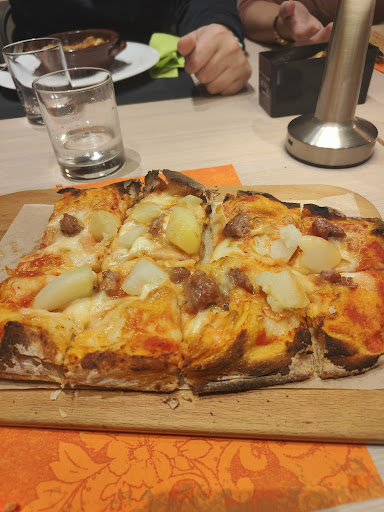 Per la curiosità della pinsa ci siamo ritrovati in un locale dove l’educazione , la professionalità del personale , la gentilezza del titolare , l’accogliere al meglio il nostro Balu ne hanno fatto da padrona, locale molto carino ed accogliente , bagni pulitissimi , ahimè però da rivedere il cibo e i prezzi , avremmo voluto assaggiare e assaporare qualcosa di produzione propria ma invece abbiamo trovato pasti congelati e pre cotti così come ad esempio ci è stato detto nel caso delle terrine in quanto un componente del tavolo non volava la pizza , in più a rendere ancor meno piacevole l’esperienza sono i prezzi , 8 euro per una porzione di patatine viola che ahimè in 4 non siamo riusciti a mangiare tutti anche i dessert da rivedere tranne quelli della pasticceria napoletana , peccato perché vedere così tanta voglia di lavorare e far qualcosa nella città di Taranto non può essere poi cestinato con prezzi alti e cibo non proprio...