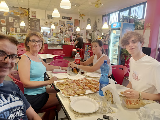 Locale semplice, molto giovanile. Buona la posizione, buono il parcheggio auto, facile l entrata per tutti e per i diversamente abili. Ampia sala con tavoli e sedie. Una tv satellitare grande. Un calciobalilla nell attesa per mangiare molto simpatica l dea, in più ci sono altri giochi. Toilette comoda doppi wc uomo/donna e doppi lavabi. Ma la cosa più importante è che si mangia un ottima pizza. Friabile e croccante al punto giusto. Pizza al taglio e puoi scegliere quella che vuoi tu a gusto tuo. Così anche per i fritti che sono croccanti e leggeri.... Ottima cottura per entrambi le cose. Panini strepitosi di ogni genere...... Buonissimi!!!! Prezzo più che abbordabile e se ti avanza della pizza o altro te lo incartano e te lo porti a casa. No spreco! Ottima cosa direi!. Insomma non c è più bella cosa di mangiare bene, spendere il giusto e portartelo a casa. Ah.... dimenticavo!!! Puoi ordinare e portartelo a casa in tutta sicurezza con le loro confezioni d asporto. Per entrare devi esibire il green pass, mettere la mascherina e gel...