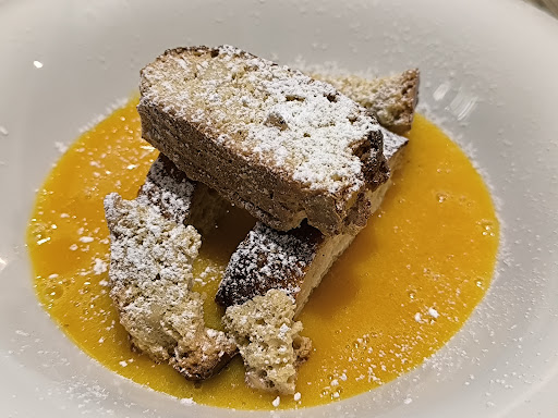 Noi abbiamo preso: antipasto di Ceviche di pescato primo pici con gamberi rosa ed orecchiette con vongole secondo frittura miste cicoria dessert Tarte Tatin con gelato alla vaniglia vino Gewürz...