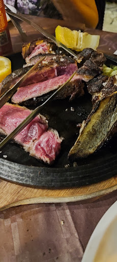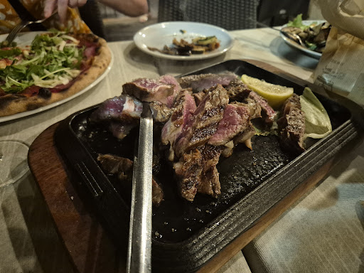 Read moreLa prima nota di merito è per l'accoglienza. Cordiali e gentili nonostante il locale pieno e noi arrivati senza prenotazione. Al momento dell'ordine i suggerimenti non sono mancati sia per le cose da ordinare che per le quantità. I piatti presi: tagliere piuttosto ricco, con panepizza un po' salata per i miei gusti, ma neanche troppo. e costata (enorme!) Servita su un piatto di ghisa che l'ha fatta rimanere calda fino all'ultimo boccone. Accompagnata con un contorno di paparina da una verdura spontanea della famiglia del papavero. Tutto...