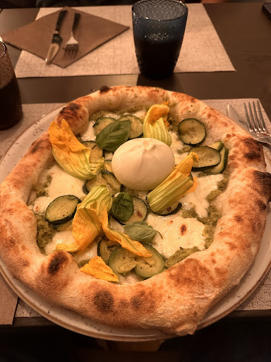Read moreNon mi piace lasciare recensioni negative.... soprattutto quando la pizza è di fatto buona... ma purtroppo la mia esperienza in questo posto è stata fantozziana, a voler essere clementi... Prenoto in questo locale spinta da una video-recensione di IG che sponsorizzava le loro pizze dolci decisamente pornografiche, quindi vado esplicitamente per queste. Tra le foto di google vedo anche dei pizza-roll tipo sushi, ma di pizza. Arriviamo e chiedo subito di questi, e mi viene detto che non li fanno più. Chiedo delle pizze dolci, e mi viene detto che si fanno solo al giro pizza del mercoledì.... Delusa come non mai (veniamo dalle Marche quindi immaginate....), scelgo una pizza Nerano e chiedo se si può aggiungere il cornicione ripieno di ricotta, e mi viene detto che questo si può avere solo sulla pizza Cornicione.... ok, allora una Nerano semplice, perfetto, ma abbiamo finito i fiori di zucca (parte fondamentale degli ingredienti della pizza).... cambio la Nerano con una Cornicione e chiedo una porzione di patatine con l'aggiunta di salsa cheddar, che mi viene autorizzata tra una lamentela e l'altra... salvo che poi mi sono arrivate ste patatine col cheddar... e i wurstel! (avevo specificato di essere vegetariana...) vabeh... Prenotazione ore 20, ti danno 1 ora e un quarto per concludere la serata, e ovviamente tutti questi intoppi hanno allungato i tempi di ordinazione, quindi alle 21.20 arriva il cameriere a cui chiedo i dolci, e lui mi fa notare che il nostro tempo scadeva alle 21.15 quindi al massimo poteva portarci un caffè!............. Fine della serata!! Ok che era sabato sera... ma la pizza non è proprio regalata, perché 4 pizze e una porzione di patatine, più le bibite, 100 euro tot. Almeno mi aspetto di godermela insomma... L'impressione è stata quella di voler buttare dentro più gente possibile a discapito della qualità del servizio.... E comunque se puntate tutto su un prodotto per farvi pubblicità, scriverei a caratteri cubitali ovunque che è disponibile solo un determinato giorno, a scanso di...