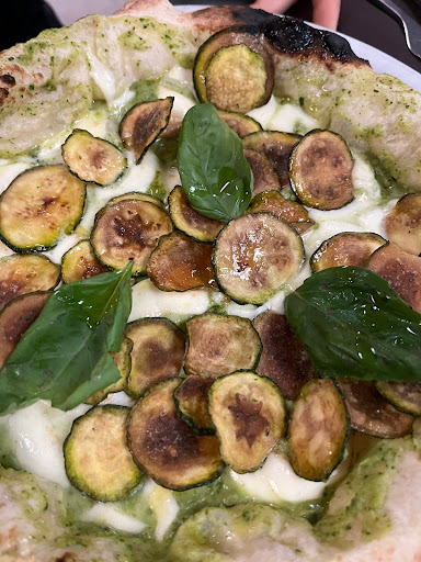 Read moreDi questo posto me ne hanno parlato bene in tanti. Premetto che prima di ieri non ero mai andato. Io e i miei amici decidiamo di andarlo a provare, e siccome il pizzaiolo Raffaele Ciaramella è un mio amico di scuola, è salita la curiosità di provare il suo impasto. Appena arrivati al locale, circa le ore 21 e 20, il posto auto non c'era, tutto pieno e abbiamo optato il parcheggio su bordo strada, non uno dei più sicuri ma assicuro che al ritorno l'auto c'era ancora hahahaha. Entriamo nel locale, ovviamente di sabato sera super affollato e chiedendo il tavolo prenotato ore prima ci accorgiamo che non era pronto; dunque aspettiamo una decina di minuti e ci siamo accomodati in un tavolo da 4 anche se eravamo 5, però, quest'ultimo era abbastanza capiente. Dopo circa 20 minuti prendiamo ordinazione, questa forse un po' lenta. Optiamo per 5 pizze, senza antipasto, quindi dritti al dunque. Scegliamo due "La nostra margherita" ossia una margherita con pomodorino giallo e pesto di basilico con un sapore davvero delicato, due "Diavola 2.0" ossia una rivisitazione della diavola da far PAURA!!! Un esplosione di sapori misto a piccantezza con tanto di 'nduja calabrese, veramente un capolavoro!! E una "Nerano" altrettanto buona, con delle chips di zucchine davvero sfiziose. Ultimo ma non per importanza, l'impasto della pizza contemporanea, di una sofficità veramente sublime, leggero e cotto alla perfezione. Sicuramente avrà un alta idratazione e una buona base di fermentazione, top. Il servizio non è stato tra i più veloci ma l'afflusso era elevato. Camerieri gentili, e soprattutto veloci nell'entrare e uscire dalla cucina. I prezzi sono onesti e accessibili. Sicuramente è un posto che consiglio, ci ritornerò, soprattutto per assaggiare...