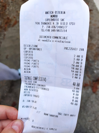 Read moreHo prenotato un tavolo per 2 forse 3 persone 2 gg fa. Arrivati in 2 la cameriera ci fa accomodare su una discreta stanza con tavoli e sedie da ristorante. Ci accomodiamo e un paio di minuti dopo la stessa cameriera ci dice di spostarsi un una altra sala perche eravamo "solo in 2". Accettiamo (benchè già seduti e spogliati) e ci portano in una sala che ha le sembianze più di un garage che un ristorante e in un paio di punti ci pioveva anche dentro... fatto presente e la risposta è stata "ma non piove sopra il tavolo". Ordiniamo due primi, una minerale ed un calice di vino. Le pappardelle ai funghi non avevano un gusto apprezzabile, lasciate sul piatto. Abbiamo deciso, quindi, di andare via. Ho dovuto aspettare 10 minuti davanti alla cassa prima che arrivasse l'addetta ai conti e al momento del pagamento avevano anche il bancomat che non funzionava quindi ho dovuto pagare in contanti 27 euro. Insomma una esperienza molto negativa sotto...